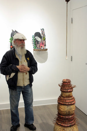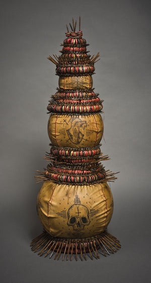 Dancing between life and death, Lucien Shapiro’s art is rife with found objects, textures, cast forms, manipulations, raw substances, oddities and multiple personalities. Treating forgotten objects and memories as treasure, he creates a kingdom under which new life is born through sculpture. Urban Obsessions explores both artist’s and viewer’s perception of identity, addiction, and time. Composed of elaborately constructed masks and ornately armored weaponry, this collection of works examines a relationship between modern waste and memories of ancient cultural artifacts. Practices and customs from the past are brought back to light through Shapiro’s revival of discarded materials, transformed into objects analogous with self protection. Behind masks and armor, we’re enabled with the power to separate and shield ourselves from reality, creating new identities through a deliberate opposition of our true selves. Urban Obsessions tangibly relates the past’s and present’s ritualistic escape from stress, pain and even love.