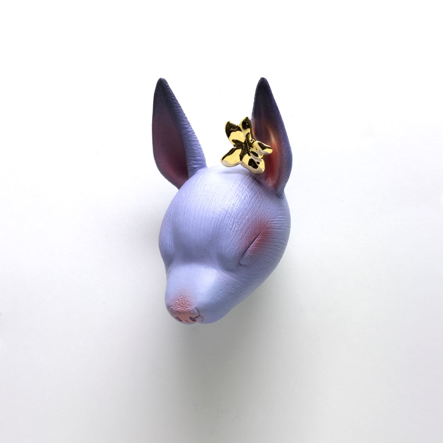 • Erika Sanada's early inspirations stemmed from creatures and characters of horror films. Watching these stories were a way for her to escape unpleasant realities during childhood. She creates intricate, hairless ceramic creatures—often adorable but also unsettling and bizarre. Sanada is represented by Modern Eden Gallery in San Francisco where the artist currently lives and works.