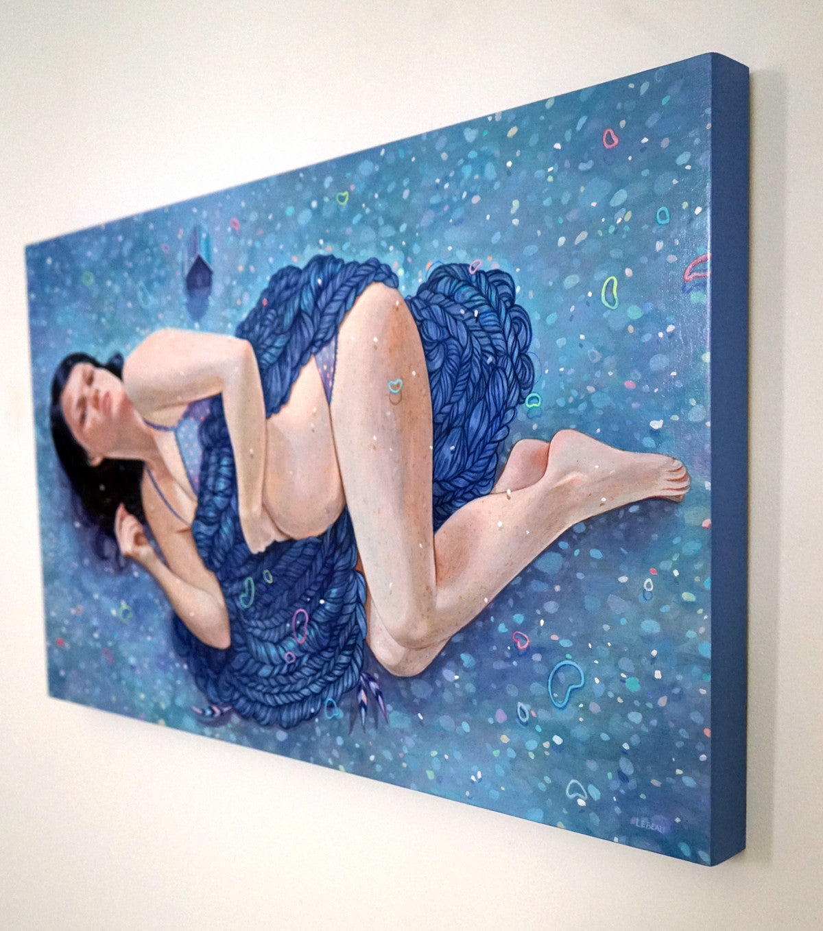 • Edith Lebeau is a Canadian artist based on the north shore of Montreal, Quebec. She spends most of her time painting in her studio with her Evil cat named Jack. For some time, Lebeau lived in the countryside, surrounded by fields, forest and a distant horizon line.  Lebeau tells stories through the portraits that she creates. She paints strong female figures and intricately pairs them with fauna and flora elements that are facing their own insecurities. She draws inspiration from her own experiences as well as from nature, pop culture, movies, music videos, fairy tales and various mythologies. Her works has been exhibited in Montreal, Berlin, Rome, Los Angeles, Las Vegas, San Francisco and New York among other cities.