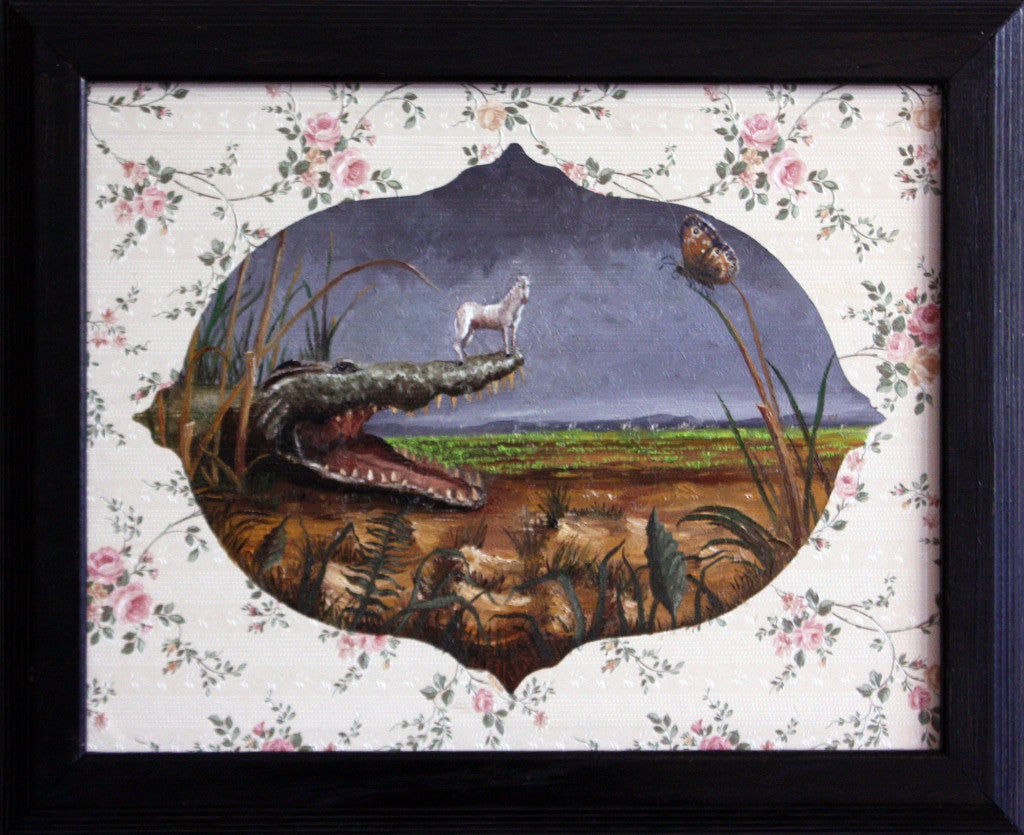 14 x 11 inches, Oil on Wallpaper, Framed.