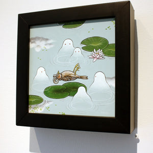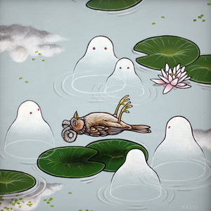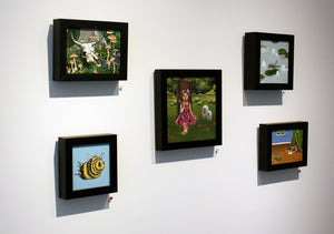 • Tara Krebs is a Toronto-based artist who paints surreal worlds and storybook-style imagery to explore her memories of childhood role-play, and feelings toward the symbiotic nature of all things. Working predominantly in acrylic and oils, her intricately detailed scenes are meant to draw the viewer in, as one would experience while reading a picture book.