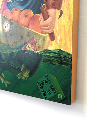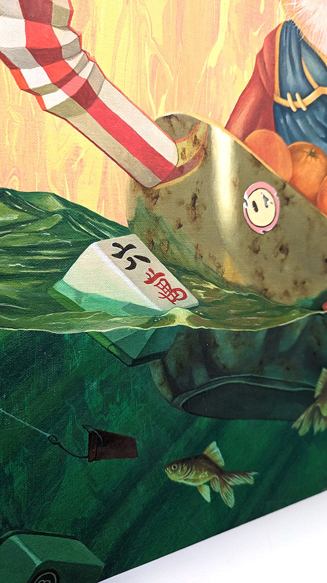 Yu-Chun “Pony” Ma grew up drawing manga in Taipei City, Taiwan, before moving to New York City at age 24. After doodling through English lessons, he received his first formal art instruction at the Fashion Institute of Technology. There, Pony discovered acrylics and fell in love with pop surrealism. The year he graduated, Pony won the Curator’s Award at 440 Gallery in Brooklyn. Since his first solo show at Freddy’s Bar, Pony’s work has been shown at the Brooklyn Waterfront Artists Gallery, the Art Slope Festival, 440 Gallery, and many times at Trestle Gallery in Brooklyn; at Catalyst Gallery in Beacon, New York; and at Out of Step Gallery in Eugene, Oregon. Pony’s work can be found in private collections from New York City to France to Australia, as well as on album covers and in magazines such as Catapult. You can see Pony’s work in the flesh at Chashama’s Open Studios, held annually at the Brooklyn Army Terminal NY.