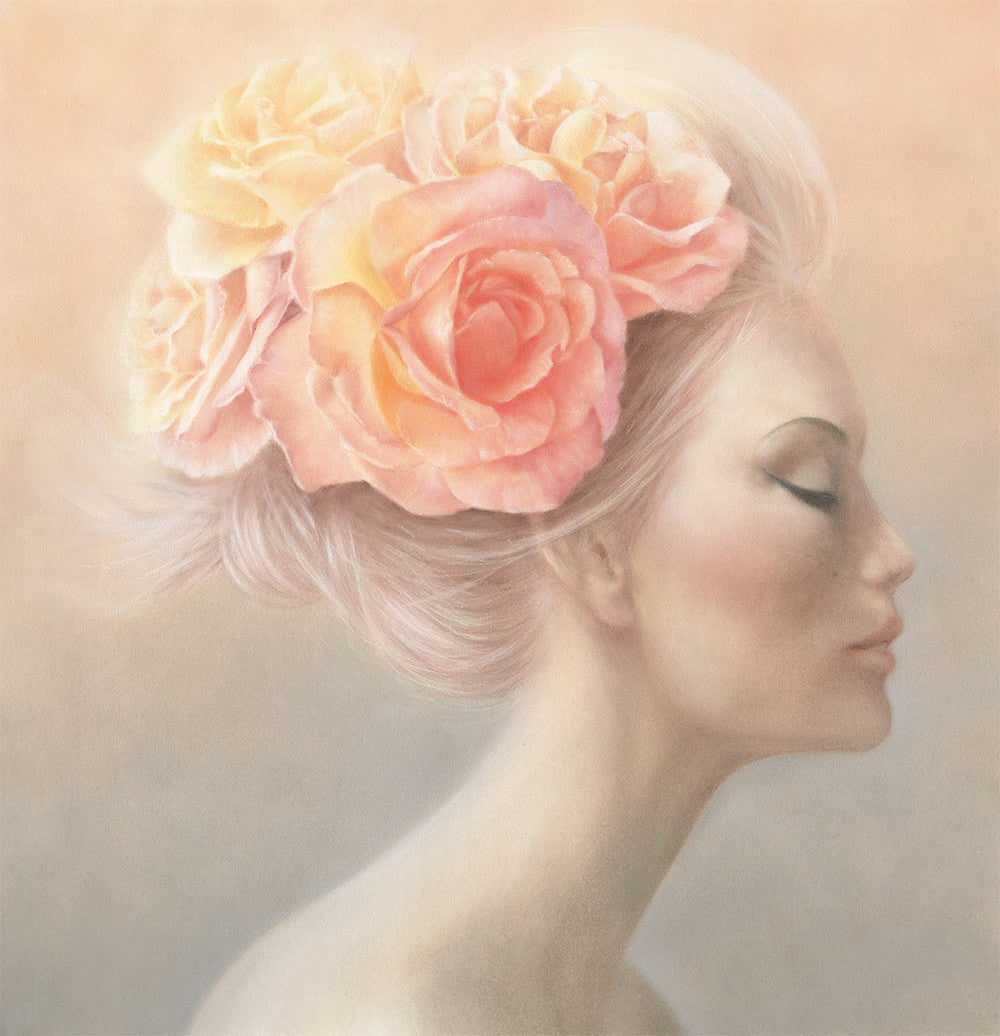 Her pieces are rendered in a palette of candy pastel hues, with a gossamer like delicacy. Hyperreal and uncannily executed, the seduction of the imagery is ultimately contemporary and odes to feminine beauty that combine nostalgia with timeliness, hyperrealism with stylistic license – hovering seductively in the realm of dream.