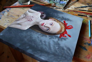 My inspirations have been as diverse as: folklore fairytales, children book illustrations, imaginative soviet animation films and supernaturally real classical painting; the colorful forbidden rare secret imagery of the western pop culture surrounded by mystical, almost religious tone for us, soviet children; the terrifying war and deportation stories that my grandparents, and their little brothers and sister witnessed as small children; pompous alienated eerie atmosphere of the catholic church ceremonies, and the breathtakingly beautiful ballet performances in the opera house, where I was taken since the age of two etc. – all the bitter-
