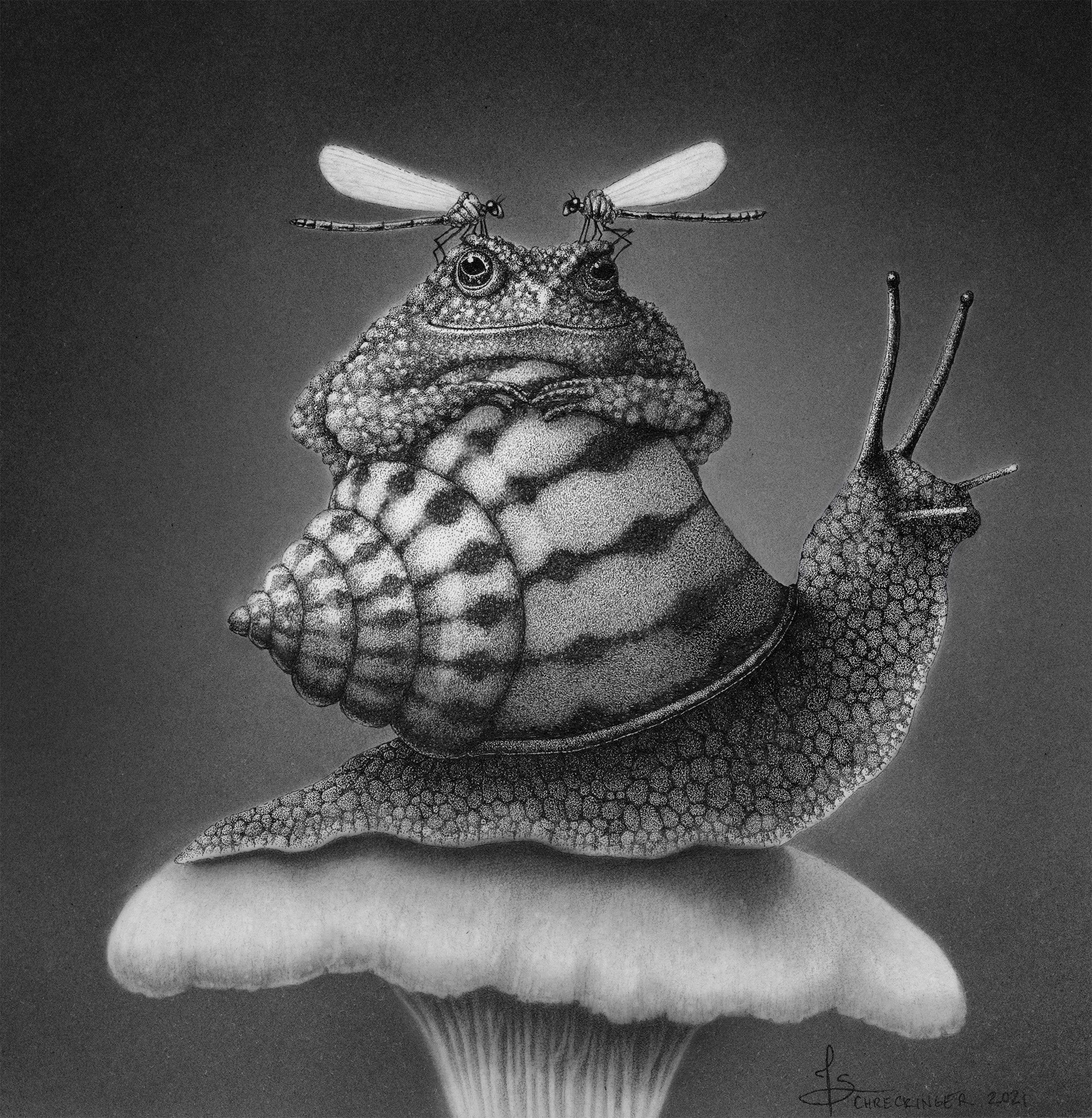 • Born in 1999, Juliet Schreckinger is a Long Island, NY based artist. Her work is typically created using a stippling technique in pen & ink and graphite, with occasional splashes of color. Juliet’s pieces are inspired by the ocean, nature, and all of the creatures within our world. Since the time she was a child, Juliet has been fascinated by black and white photography, colorless television shows, and film noir movies. Being exposed to the lighting effects and sharp contrasts shown in these photographs and films greatly inspired the type of work that she does today. Juliet’s work is centered around giving a voice to nature and animals, with the goal of showcasing their importance in this world. Through an illustrative take on fine art, she attempts to express a story in each drawing.