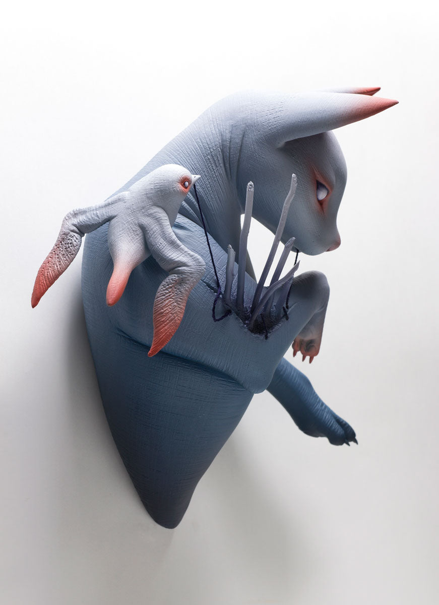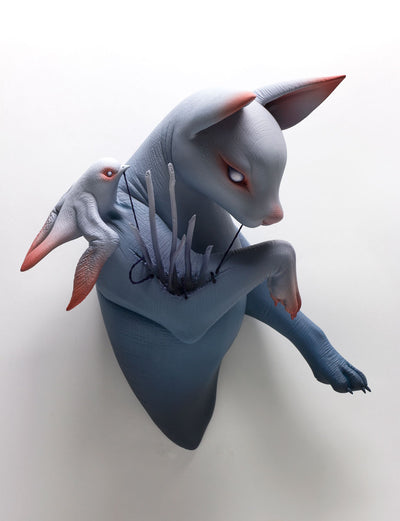 • Erika Sanada's early inspirations stemmed from creatures and characters of horror films. Watching these stories were a way for her to escape unpleasant realities during childhood. She creates intricate, hairless ceramic creatures—often adorable but also unsettling and bizarre. Sanada is represented by Modern Eden Gallery in San Francisco where the artist currently lives and works.