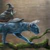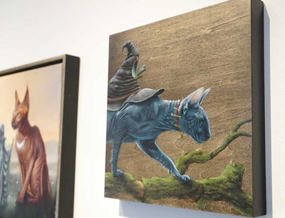 If thoughts and dreams were photographed then Ben Patterson's works would be just that. Bizarre animals, graffiti birdhouses, and child-like characters are all posed in surreal settings. There is an innocence reflected in his works, yet an underlying sadness that sits upon them. Rendered in a high low style, polished yet simple at times, Patterson's art emphasizes the dream and the possibility of change. Many works seem to be on the verge of a tipping point, depicted at the peak of a transition where the viewer is left to decide which direction it will take. Patterson pushes this idea of the contradictory state, where there is no absolution of right or wrong, no definitive choice, but only a harmonious variation where both exist.