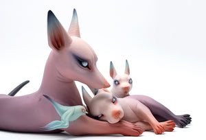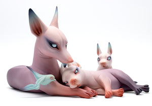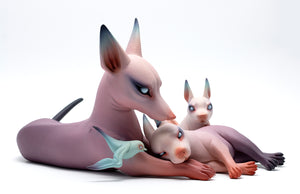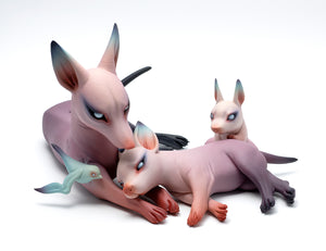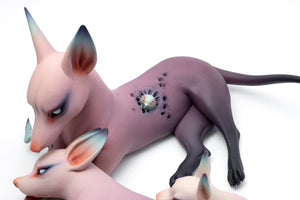 • Erika Sanada's early inspirations stemmed from creatures and characters of horror films. Watching these stories were a way for her to escape unpleasant realities during childhood. She creates intricate, hairless ceramic creatures—often adorable but also unsettling and bizarre. Her artwork has been published in Hi-Fructose Magazine, Hey! Magazine, and Beautiful Bizarre Magazine. Her recent works are a part of the permanent collection of the Crocker Art Museum (Sacramento) and on temporary exhibition at the prestigious Fondation Bernardaud (Limoges). Sanada is represented by Modern Eden Gallery in San Francisco where the artist currently lives and works.