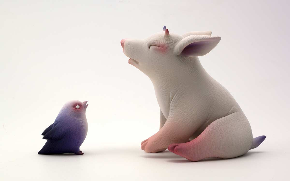 Erika Sanada's early inspirations stemmed from creatures and characters of horror films. Watching these stories were a way for her to escape unpleasant realities during childhood. She creates intricate, hairless ceramic creatures—often adorable but also unsettling and bizarre. Her artwork has been published in Hi-Fructose Magazine, Hey! Magazine and Beautiful Bizarre Magazine. Sanada is represented by Modern Eden Gallery in San Francisco where the artist currently lives and works.