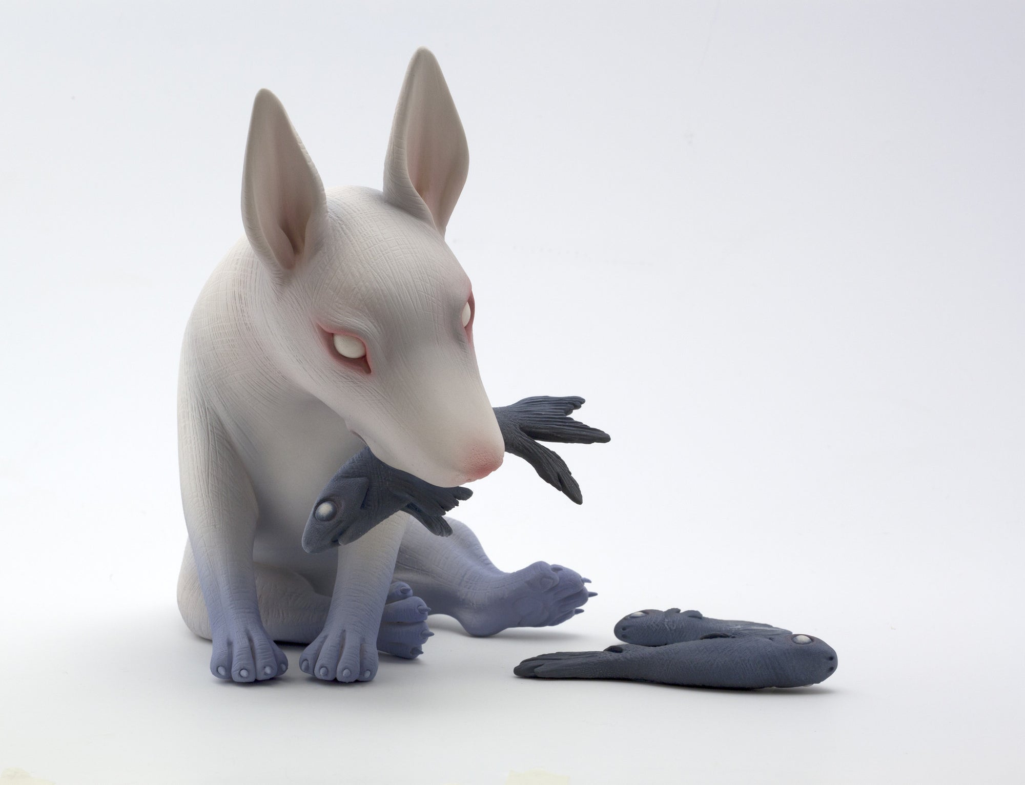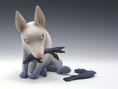 Erika Sanada's early inspirations stemmed from creatures and characters of horror films. Watching these stories were a way for her to escape unpleasant realities during childhood. She creates intricate, hairless ceramic creatures—often adorable but also unsettling and bizarre. Her artwork has been published in Hi-Fructose Magazine, Hey! Magazine and Beautiful Bizarre Magazine. Sanada is represented by Modern Eden Gallery in San Francisco where the artist currently lives and works.