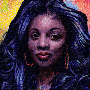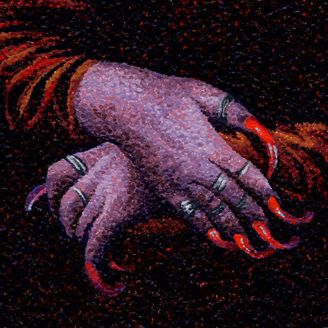 While you are enveloped in sleep, JoKa is toiling into the night stippling acrylic paint to blank facades, using images of styles and faces of yore. Having a penchant for meticulous and detailed work led JoKa to his method of hyperpointillism, wherein he uses only toothpicks to apply his tiny dots of color. Although his images may be skewed from direct interpretation, the meanings behind his work are usually dark in tone and leaning more towards a devious nature. Currently residing in Philadelphia, he has exhibited from coast to coast as well as lands afar.