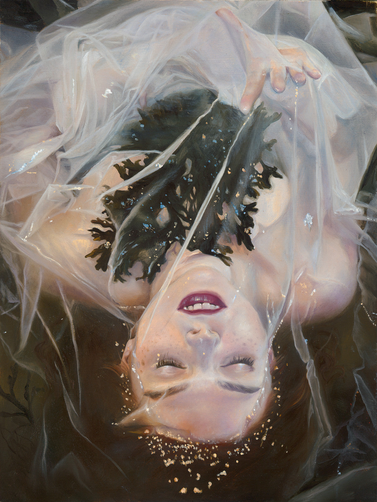• A Lovelorn Theft is inspired by tales of swan maidens and selkies of Nordic folklore. This series features mysterious and beautiful creatures that shape-shift by shedding their animal skin into the form of human women. Each piece withinA Lovelorn Theft  freezes a moment in time, placing the viewer in the role of a lovelorn voyeur, who spies these beautiful creatures for the first time. The artist’s careful attention to detail and adept brushwork describe subjects that are ethereal and otherworldly, yet rendered to a specificity that begs temptation.With a historical nod to the Pre-Raphaelites and painters of the Victorian avant-garde, Kari-Lise Alexander debuts a striking new series rooted in Norse mythology and the mysteries of the heart.