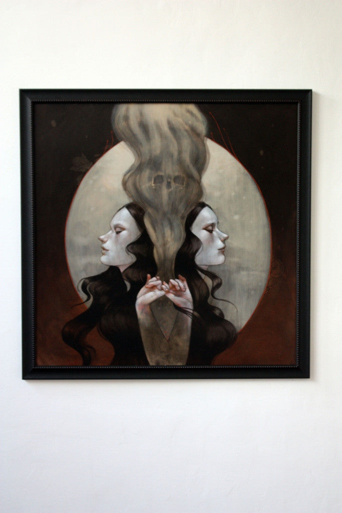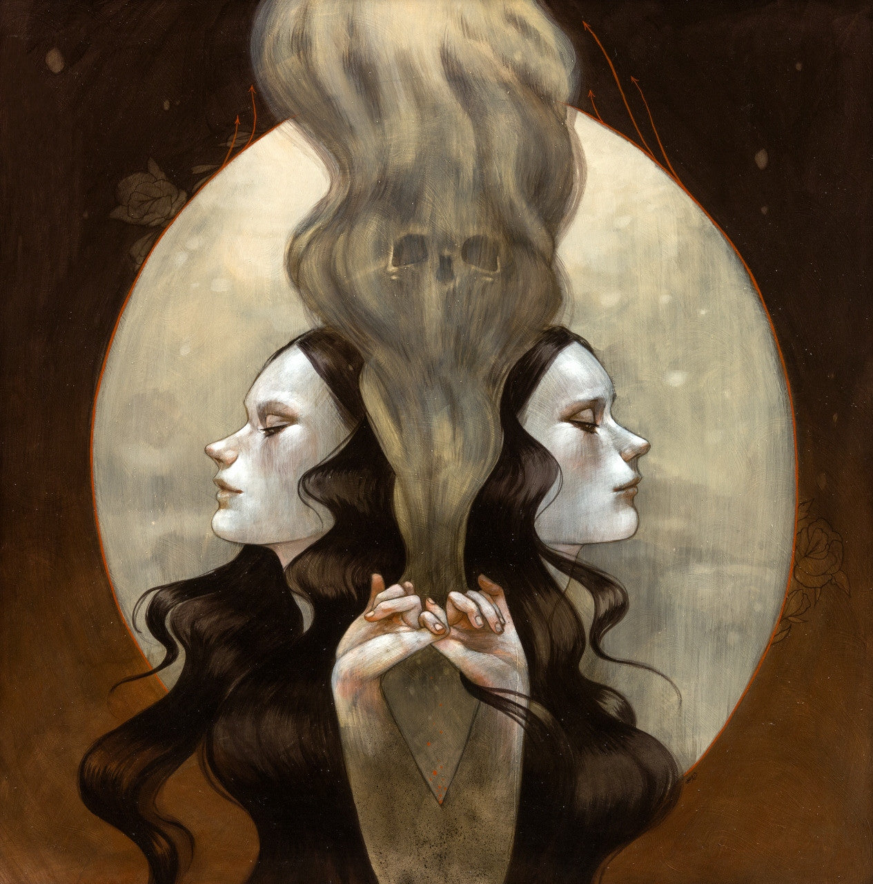 Leilani Bustamante was born in Santa Rosa California and is a graduate of the Academy of Art University. She grew up between the suburban sprawl and rural Fort Bragg, where she draws inspiration from their simultaneous decay and growth. Her work often voices themes of mortality exploring elements of death, rebirth, beauty and spoil, the loveliness of the macabre and the mournful influence of osteological motifs. She currently lives and works in San Francisco and graduated from the Academy of Art Universtiy, San Francisco.