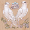 The Language of Flowers Secret Meaning: Two albino robins gaze upon their carnation nest of new, blue eggs.