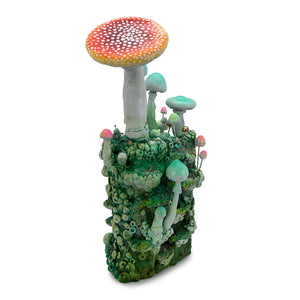 "My work explores our connection to the mysterious fungi kingdom. I’m curious about death and what lies beyond. As decomposers of dead, organic matter, mushrooms are symbols of the imminent life and death process. They release enzymes to feed on dead, organic matter. It’s a fascinating juxtaposition; an organism that cleans and clears away dead matter and an entheogen that, when ingested, brings about transcendent states of consciousness.