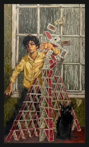 • Lacey Bryant is represented by Modern Eden Gallery in San Francisco, and has partnered with us on this project. Over the years, we have worked together on numerous shows and projects over her career. This particular series, which began in 2012, shortly after her first solo exhibition at the gallery, has grown in scope and ambition in the ensuing years. During the long time these paintings were being produced, the artist created works for 4 major solo exhibitions and more than 15 group exhibitions at Modern Eden, along with residencies in 2016 and 2017 at Chalk Hill. Throughout, she always found time to return to the tarot. There are reflections of her life and her community in every card, and while the process has been slow, it has been full of intention.