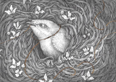 • Graphite and Gold Leaf on 600 gsm Pressed Paper Postcard