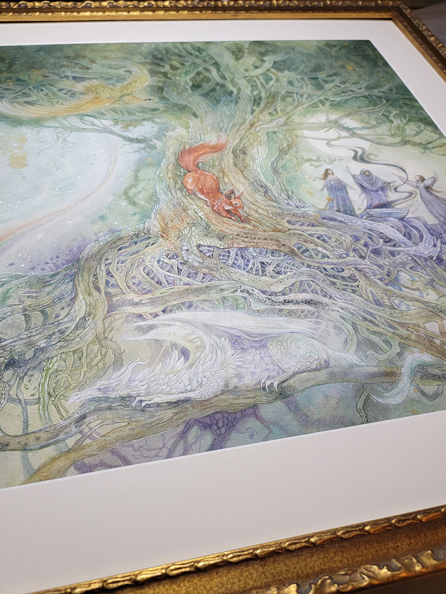Stephanie Law's work follows in the tradition of the mythic arts. She is based in Oakland, CA. Her paintings explores a surreal otherworld, and the manifestations of desire and archetype when seen with a shifted perception. Much of her inspiration stems from mythology and folklore, mingled with the movement of dance, and the chaos of Nature's wild growth. She has authored and illustrated 4 books ("Dreamscapes", through North Light Books), a series on watercolor technique within a fantastical framework, and she is also the author and illustrator of the Shadowscapes Tarot (2009, Llewellyn Worldwide).